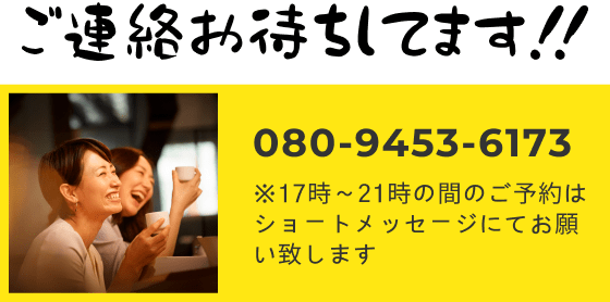 ※17時~21時の間のご予約はショートメッセージにてお願い致します。